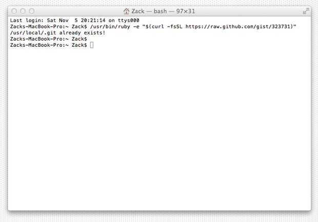 /usr/bin/Ruby -e '$(rizo - fsSL https://raw.github.com/gist/323731)'