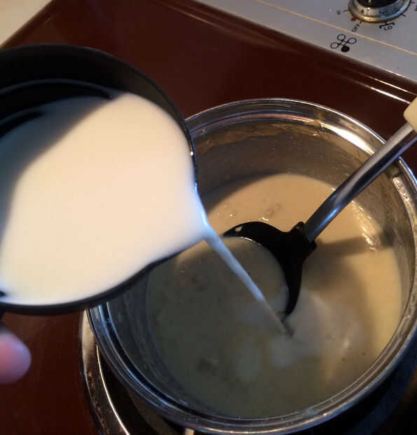 Asegúrese de no dejar de revolver una vez que se añade la leche. Puede quemarse en el fondo muy rápidamente.