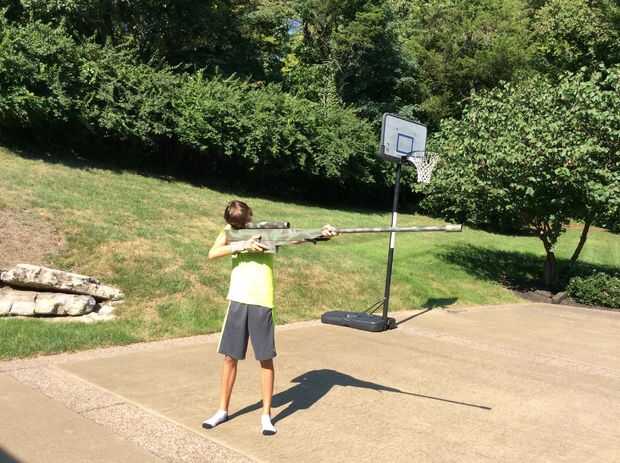 que quería hacer algo con mi hermano, y qué mejor que para hacer que una réplica de uno de los más cool buscando armas en Halo? Todo lo que necesitas son algunos 2x4s, algún tipo de pequeño cono, tubo circular 3/4 pulgada de ancho, un palillo y pintu