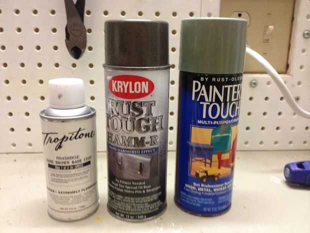 Para el diseño de camuflaje, utilicé un color marrón oscuro, un gris plata metalizado y un sabio verde. Corrí fuera broown cuando llegué a la madera, así que sólo usé el gris como base. Todos eran pinturas en spray.