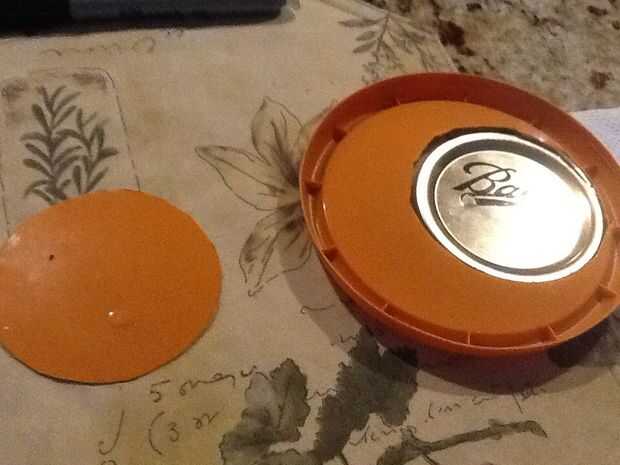 Trazar alrededor de la tapa del tarro de bola en la tapa del envase. Luego cortar el círculo.