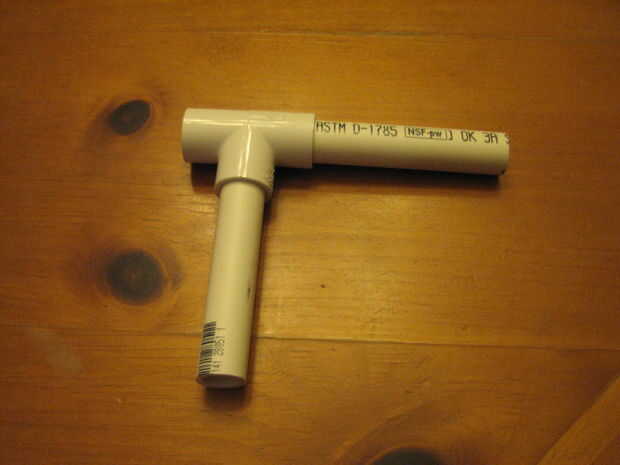 a continuación, inserte el tubo PCV de 4" en el conector T.  Se trata de la parte media del cuerpo del tirador.