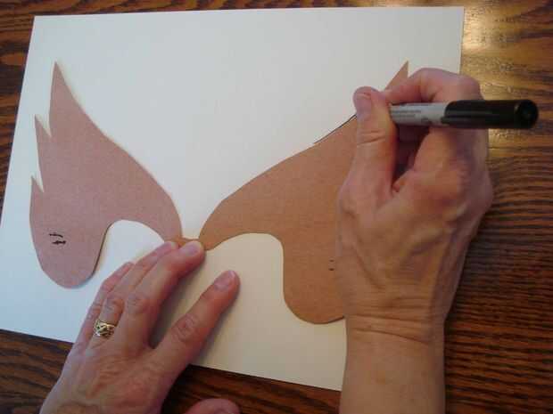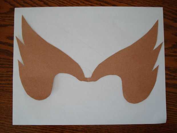 4 trace el patrón en la parte trasera de su material de la máscara. Si usas un papel brillante, es una buena idea rociar ligeramente con spray de pelo antes de cortar su máscara. Cortar el patrón. Cortar las ranuras.