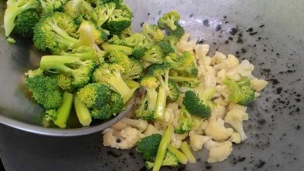 3. cubrir durante unos segundos y añadir otra verduras (añado brócoli) y mezcla... y la cubierta...