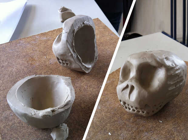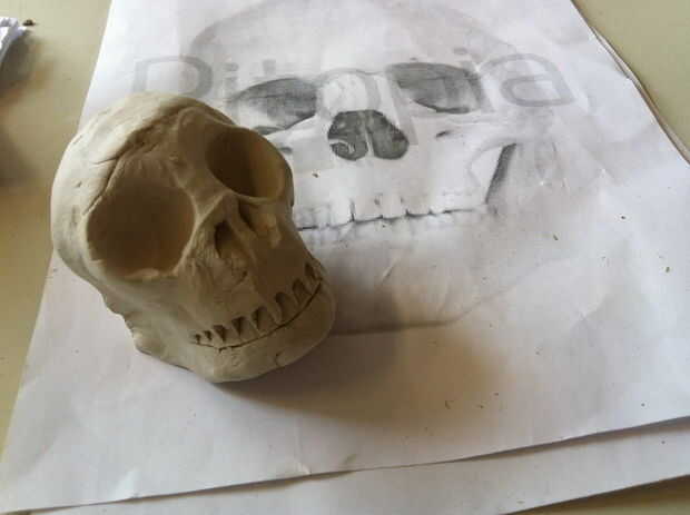 1.) apenas empezar su trabajo haciendo una simple bola de arcilla. Pulse en una forma más específica. Por último usar los pulgares para moldear en los agujeros para los ojos y remodelar formulario hasta parece un cráneo real.