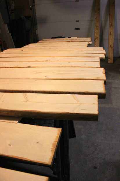 Suavemente agregue la lata con una varilla de mezclar y aplicar fino. Cuando que termines la segunda placa, la primera será seco. Así que se alinean las tablas (como en la segunda imagen de arriba) y trabajar su manera a través de. Una vez a la última Junta, iniciar bancos y se aplican a la capa a los fondos. Al llegar al final otra vez, comienzan los bancos encima para empezar a aplicar la segunda capa.