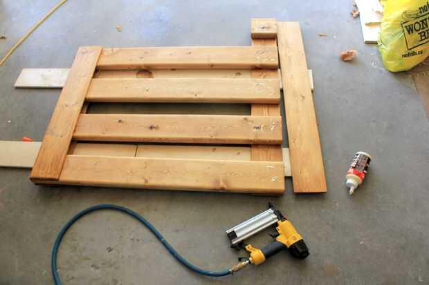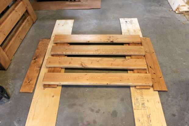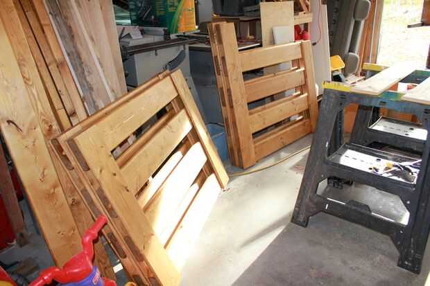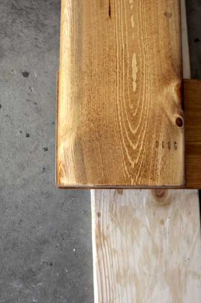 El proceso es igual a la litera de abajo. Diseño de las tablas, línea de les, pegamento, clavos.