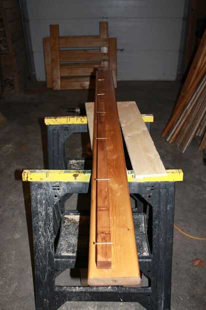Establecer las tablas de 2 x 6 largo y una pieza de 2 x 2 en cada uno. Aplique un poco de pegamento y sujetarlos juntos. Después de que previamente se taladren los agujeros (de lo contrario se puede dividir el diluyente 2 x 2) fregadero tornillos en 2 x 2 cada 8" más o menos.