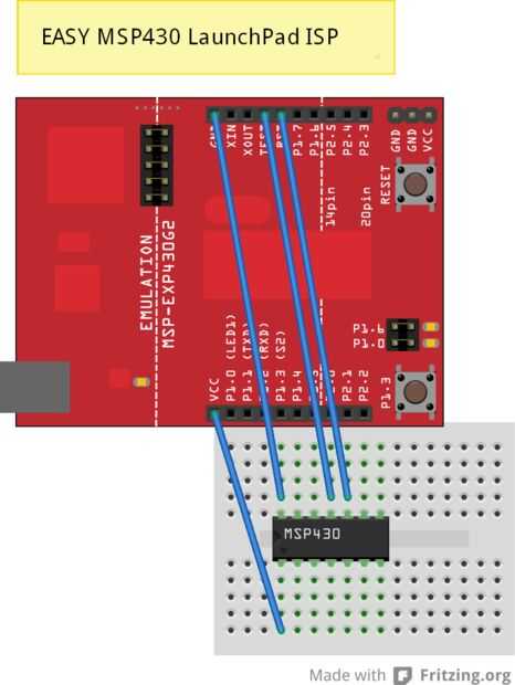 en el ejemplo utilizo MSP430G2231, pero usted puede reemplazar con cualquier 430 familias chip, si 14pins o 20pins