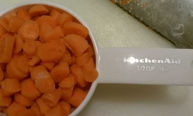 Resultado: Cuando haya terminado debe tener aproximadamente 1/2 una taza de zanahorias picadas