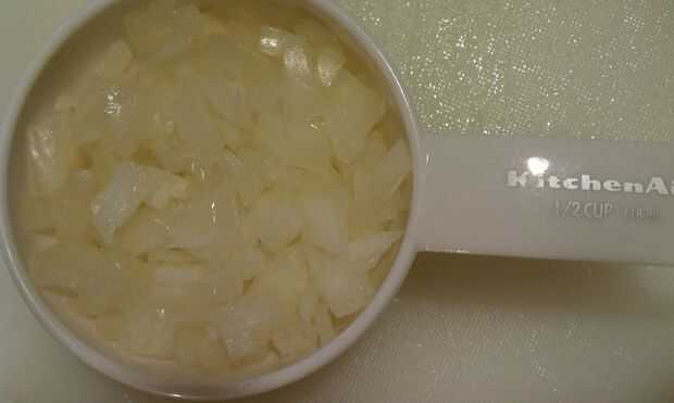 Resultado: Debe tener aproximadamente 1/2 taza de cebolla picada.