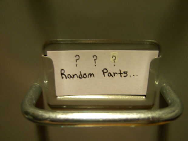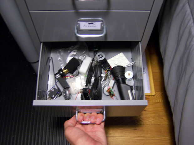 Todos tenemos uno de estos algunos lugar... mío es justo debajo de la papelera de Arduino. Básicamente cualquier cosa no han organizado aún (circuitos de electrónica de consumo, pedacitos de plástico, cosas poco útiles, etc.) todos van aquí. No hay código organizacional para mí aquí, pero si quieres conservan cosas bastante organizado ir adelante!