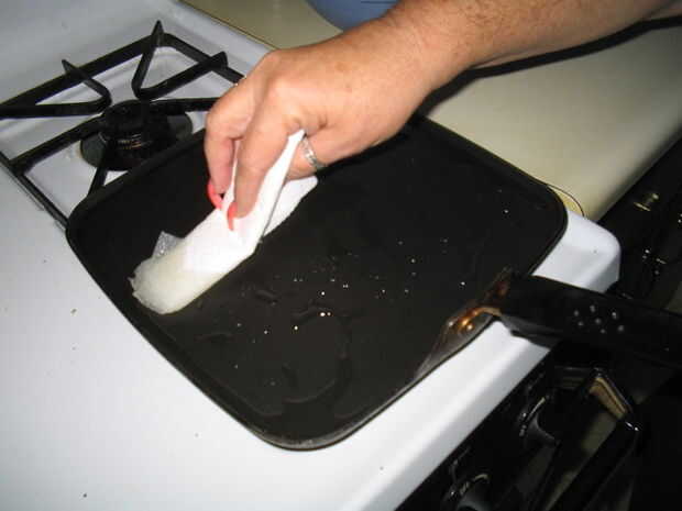 Coloque la plancha sobre fuego medio y aplique una pequeña cantidad de aceite vegetal.