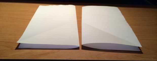 Empezar por doblar los cuadrados de papel por la mitad. Asegúrese de que doblarlas en el sentido de las flechas en la imagen. Las aberturas de los documentos deben hacer frente lejos de uno a como se muestra en la segunda foto. Esto será muy importante más adelante. Luego doblarlas por la mitad en la misma dirección una segunda vez.