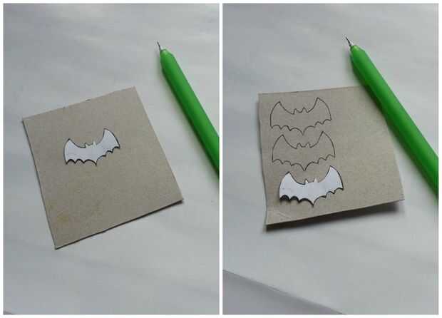 Coloque el recorte el patrón bat en el papel grueso y trace una línea alrededor de los bordes con un lápiz o pluma.