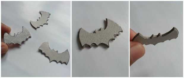 Corté 3 formas de murciélago de papel grueso para cada colgante, puede agregar más capas para hacer el colgante más grueso.