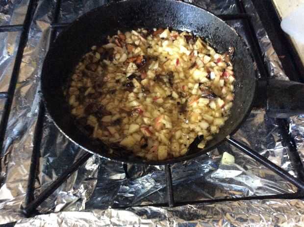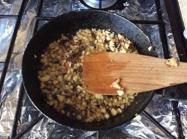 Paso 3. Luego agregar las manzanas y saltear durante 5 minutos. Apague el gas deje que se enfríe.