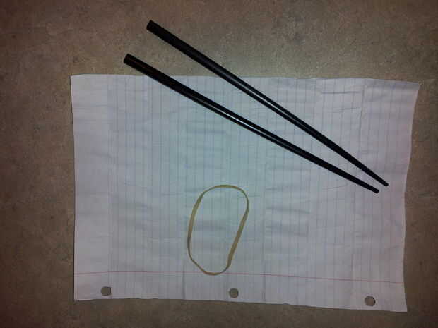 Gran Consejo, si le sucede que tiene una banda de caucho con usted y deciden comer en algún lugar que entregue el tiro palillos lejos, puede usar la envoltura de papel vienen en y viola - mismo truco fácil :)