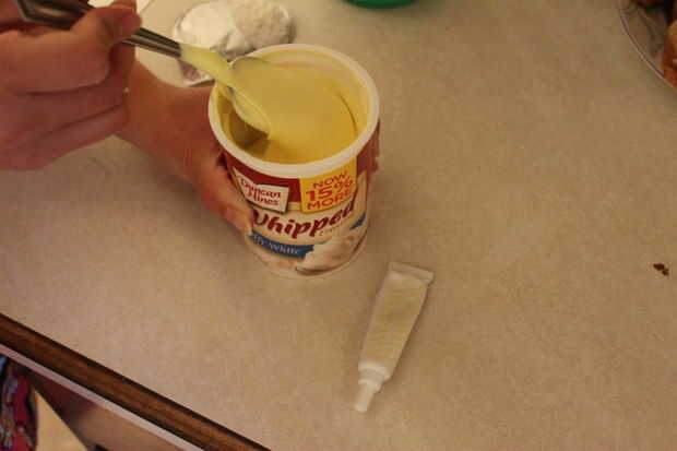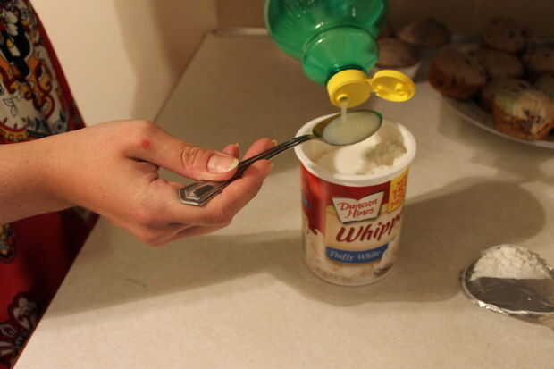 a realmente hacer estas tortas especiales y 3 cucharadas (más o menos al gusto) de jugo de limón de forma regular puede de almacén comprado hielo vainilla o llano.  También se puede añadir colorante, si usted quiere mejorar el aspecto amarillo/limón. Si usted realmente quiere, puede por supuesto utilizar un limón real y luego decorar tus pasteles con la ralladura, me quedé con el jugo ya que no tengo en mano un limón fresco.