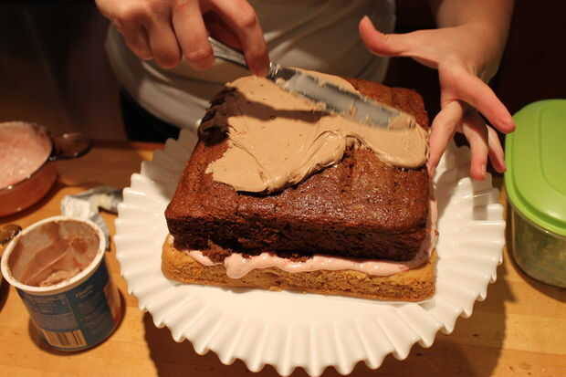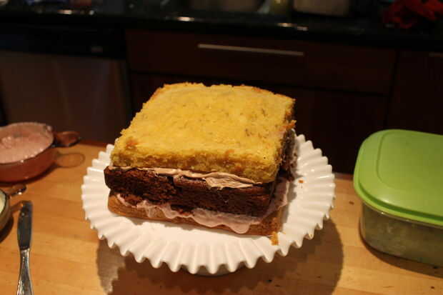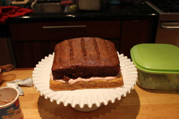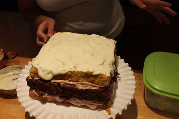 Poner la capa de chocolate encima de esta y la parte superior con chocolate glaseado de hielo.