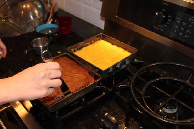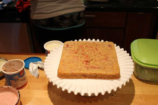 Compré un glaseado extra para tener un montón de alrededor de los lados, puede que no necesite ambas latas según lo pesado que desee cada capa que.