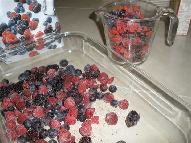 • 4 tazas (o menos) de bayas de su elección, utilizar una mezcla de bayas congeladas de arándanos, fresas y moras