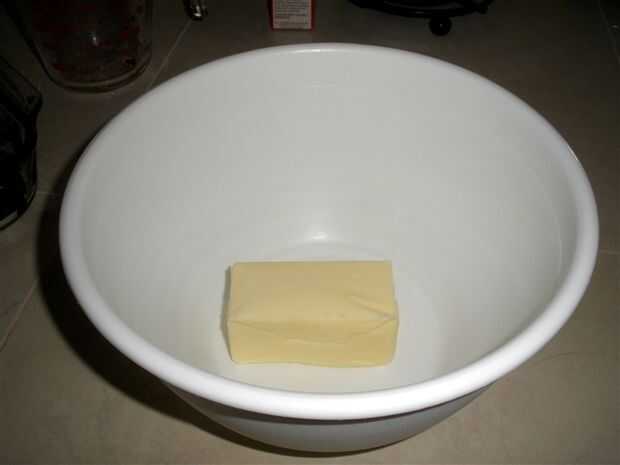 En el microondas la mantequilla (en un recipiente adecuado para microondas) durante 20 segundos en alta. Tenga en cuenta que no toda la mantequilla se puede derretir.