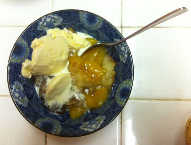 Fácil pastel de durazno cocido en un horno holandés (10 / 10 paso)