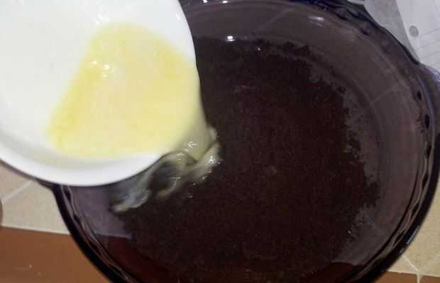 Tomar su 6 cucharaditas de manteca y cortar en cubos. Microondas en tazón durante 40 segundos Poner las migas de galleta en el molde de pastel y verter en la mantequilla Con un tenedor revuelva el puré de migas y la mantequilla hasta que completamente se combina