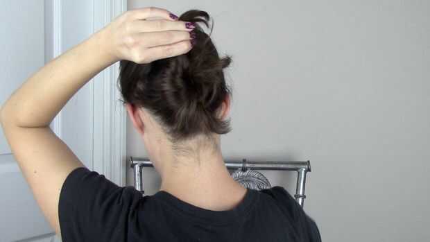 Empiece por retorcer la cola de caballo y envolviéndolo en un círculo como un moño normal. Cuando usted tiene un pequeño pedazo de cabello izquierdo, Remétala bajo el pan y tire de ella a través del centro como si se haga un nudo. (Esto es opcional. Puedes hacer un moño normal, solo encuentro cuando "nudo" el bollo de que mi pelo es mejor.)