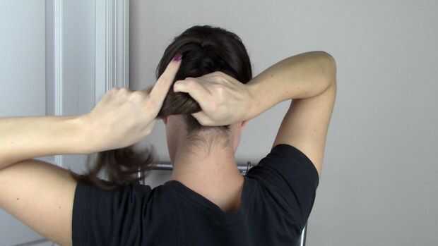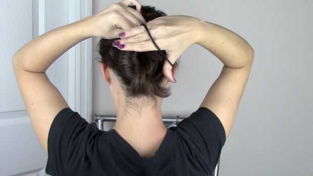 TIE el bollo como se muestra, envuelvo el lazo del pelo dos veces.
