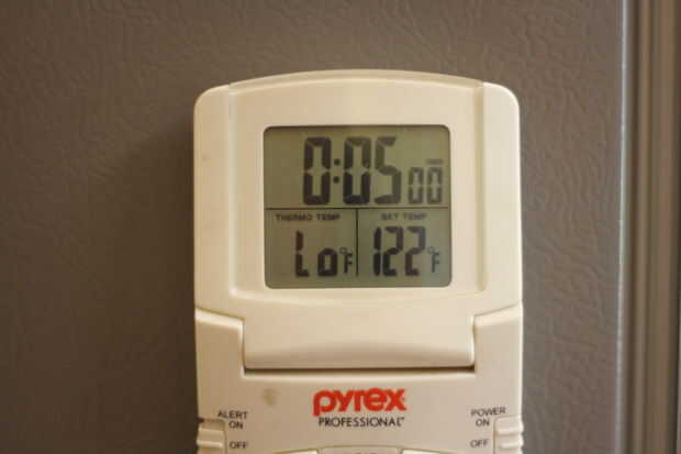 - Iniciar el temporizador, ajuste para cinco minutos, el momento la presión es de hasta todo y sale vapor.