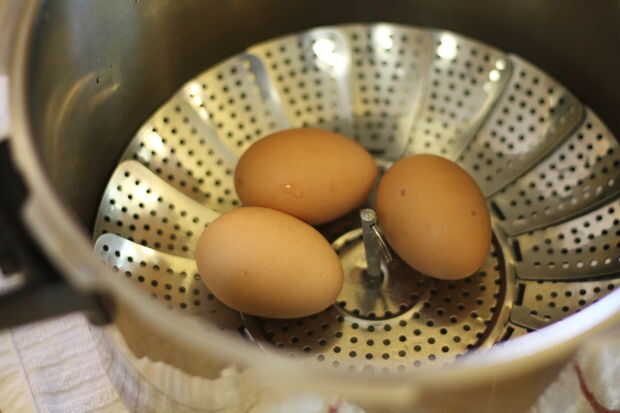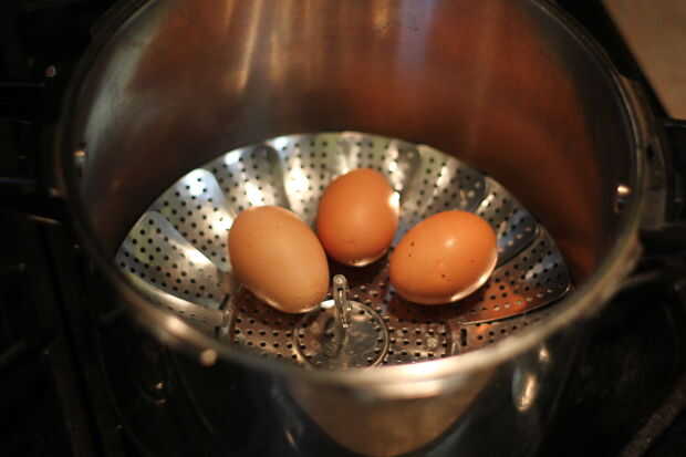 - Inmediatamente Abra la olla, poner los huevos en un cuenco y deje correr agua fría sobre ellos para refrescarse apagado.