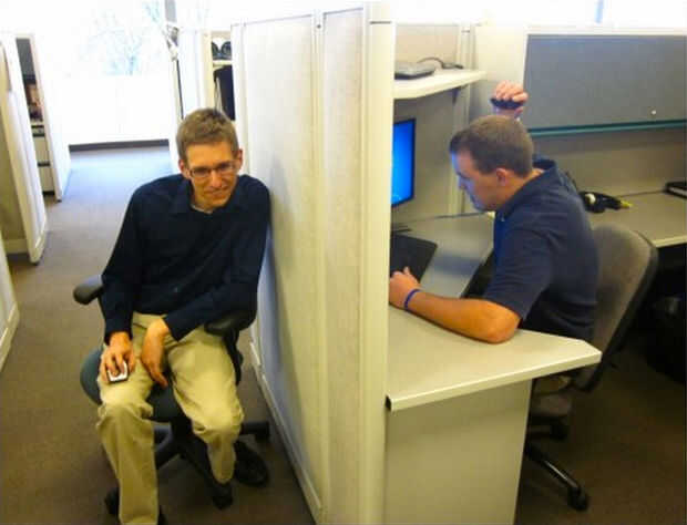 2) un trozo de cinta adhesiva transparente debajo de su ratón láser con cinta adhesiva. Sutilmente a meterse con sus movimientos hasta que notan que su ratón no está moviendo a la derecha.