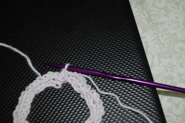 Con una sola puntada, trabajar su camino en el bucle. Al llegar al final, pone su círculo abajo de plano. Asegúrese de que usted está haciendo un bucle y no un símbolo de infinito. Si tu trabajo está doblado, sacar unos puntos y corregir el problema.