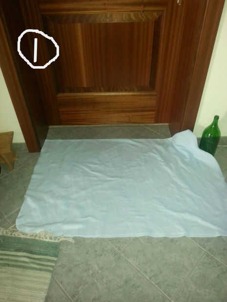 1. doble la manta en el medio una medida de la amplitud de su puerta. Mantener unos 5 cm extra de espacio y marca su manta (1a).