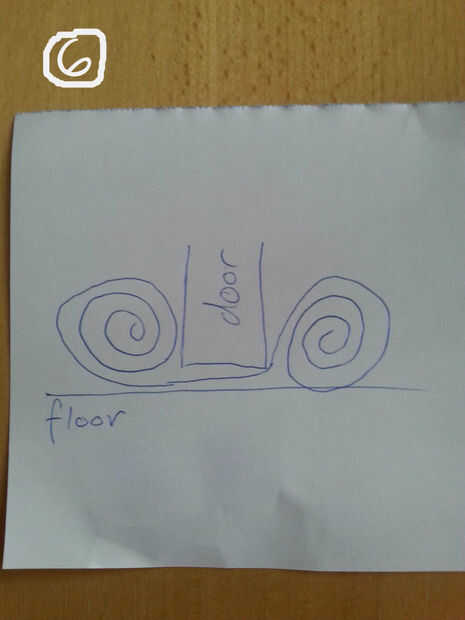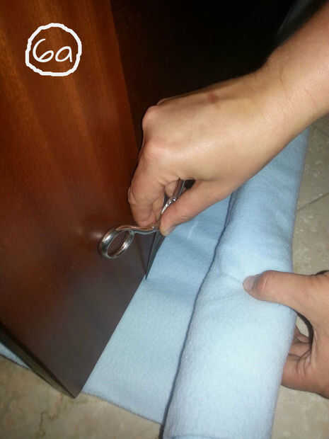 6. Gire su manta boca abajo (para evitar y proyecto de aire), colóquelo debajo de su puerta, apretar y añadir dos agujeros cerca de la puerta (6a).
