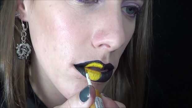 Este es un 'cómo' en un arte de labio de galaxia!Paso 1: primerPintura de labios negra.Paso 2: sombra de ojos Usar sombra de ojos azul, púrpura y rosa lugar el azar en tus labios mantener el azul en el centro.Paso 3: Colores de brillante Utilizando u