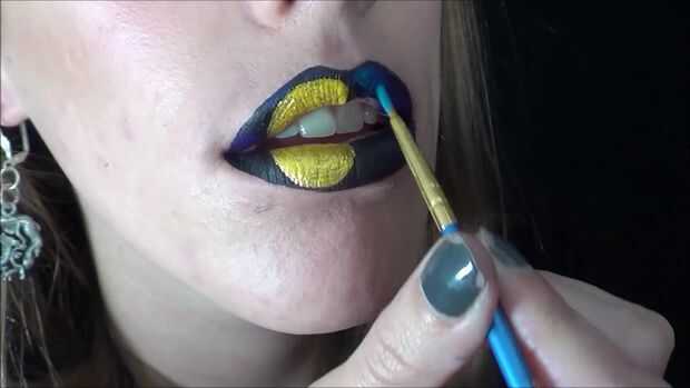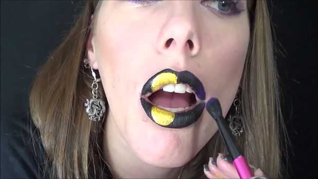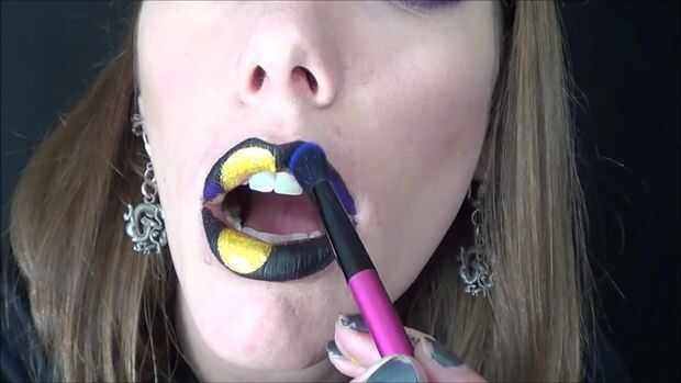 Sombra de ojos consiguiendo un oscuro púrpura que coloqué en mi labio superior sólo en las esquinas. Entonces conseguir un azul oscuro utiliza que en mis labios solo en cualquier otro lugar. Asir una sombra de ojos azul claro había puesto que alrededor de la luna.