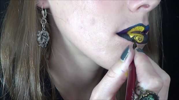 Este es un 'cómo' en un arte de labio de galaxia!Paso 1: primerPintura de labios negra.Paso 2: sombra de ojos Usar sombra de ojos azul, púrpura y rosa lugar el azar en tus labios mantener el azul en el centro.Paso 3: Colores de brillante Utilizando u