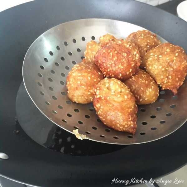 Paso 11: Cuando esté listo, scoop el plátano frito bolas utilizando un colador.