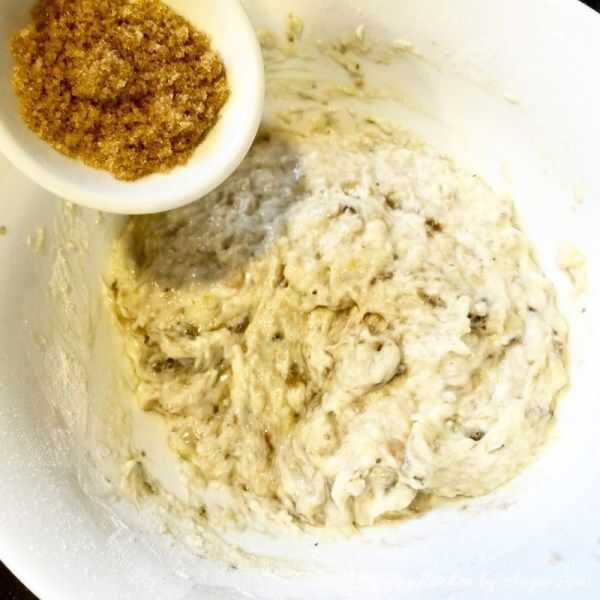 Paso 8: Justo antes de freír, mezclar el azúcar moreno a la masa de puré de plátano.