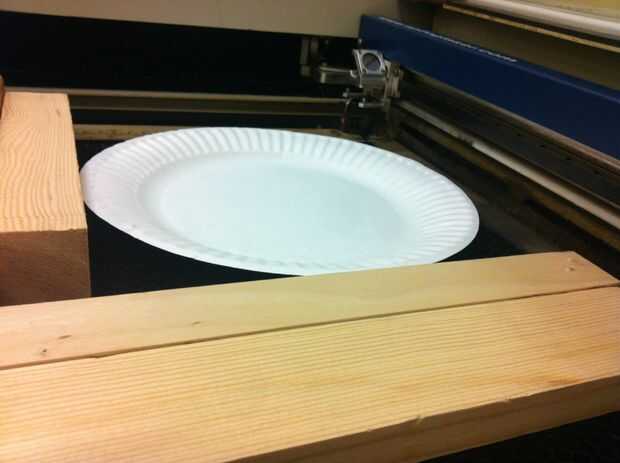 Tuve algunos docena aviones de plato de papel para cortar, usé unos pedazos de desecho de la madera para construir un nido/plantilla.