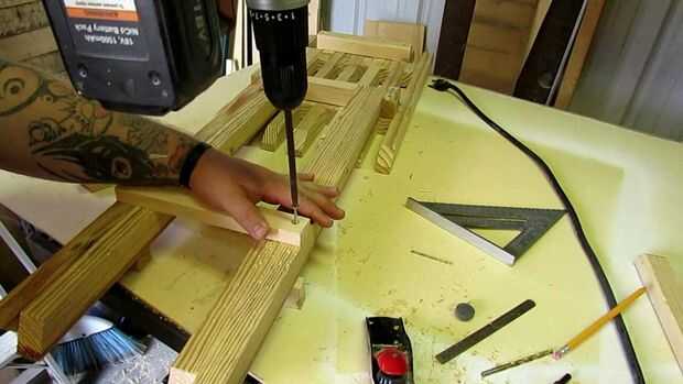 En primer lugar, usted necesitará apoyo las piernas interiores donde se encuentran en la parte superior. Lo hicimos colocando un bloque entre ellos y luego pegar y apretándolos juntos.