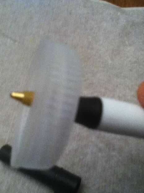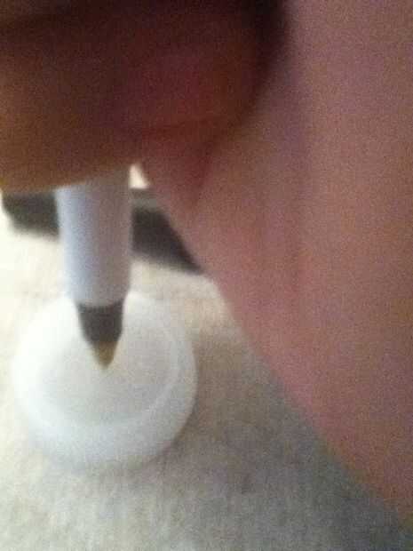 a preparar la tapa tome la pluma un poke a través de la parte superior de la tapa (mirar la foto). Asegúrese de no recorrer todo el camino, sólo la mitad de la punta como en la segunda foto.