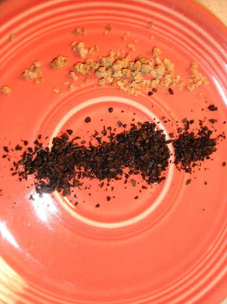 Para aquellos de ustedes moler en casa, a continuación he publicado una foto cerca del café grueso perfectamente para esta receta. Puse los terrenos al lado de algún cereal Grape Nuts para una comparación de tamaño.