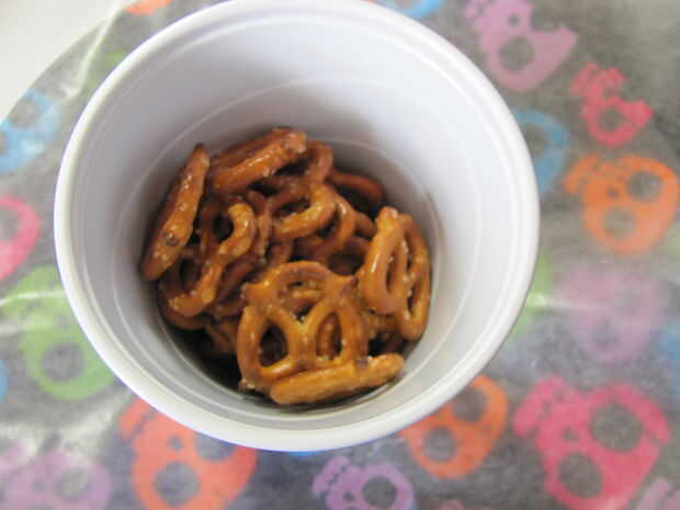 También me gusta salir los pretzels de la bolsa antes de tiempo. De esta manera si termino con un poco de chocolate en mis manos que tengo todo la bolsa cuando intento sacar otro.