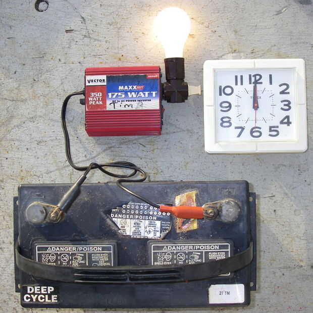 Esta bombilla de 60 vatios hace el inversor sacar unos 5 amperios de la batería.