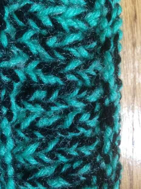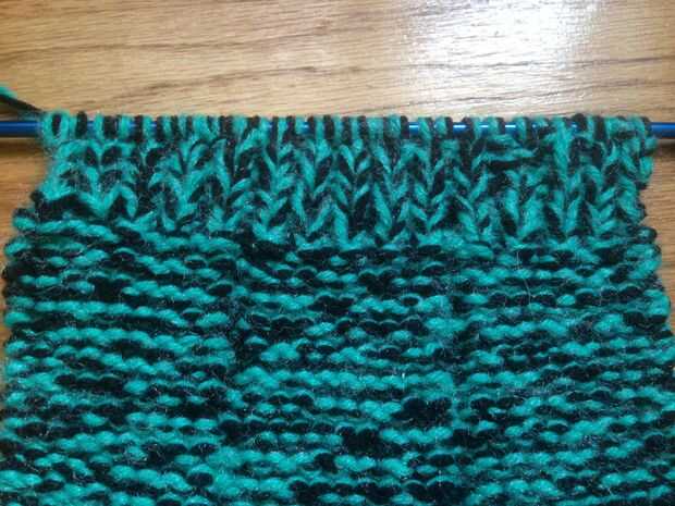 Luego se alternan purl, punto, puntilla, tejer (comenzando con una puntilla) todo el camino. Esto significa que se tejer las puntadas del tejido y trata las puntadas de la puntilla. Esto con hacer rayas de la puntada de "V".