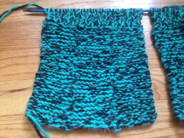 Para las siguiente fila punto alternativo, puntilla, tejer, revés, (a partir de un punto) el todo 29 puntadas abajo para ambas zapatillas